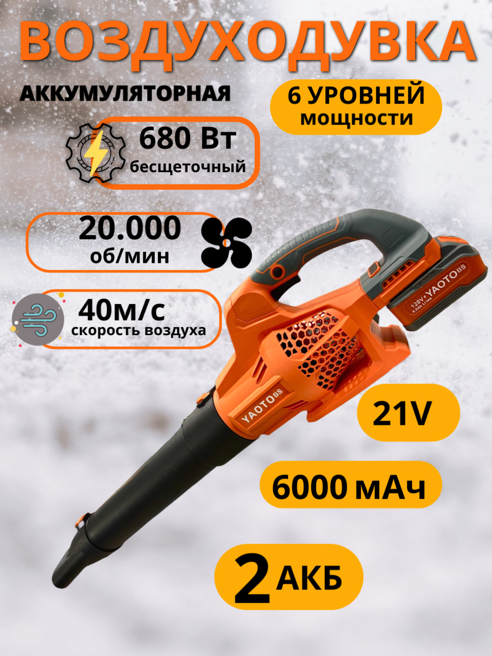 Воздуходувка аккумуляторная 1шт;